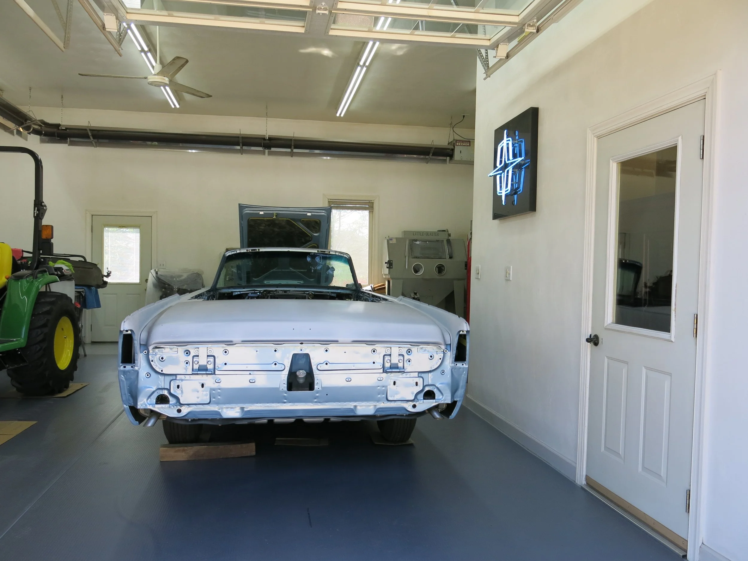 The sedan awaits the Liana touch, but there’s another work in progress that represents the best of Liana’s skill. It’s his own car, in progress to become “the best ’63 in the world.” It’s stunning even at this early stage of restoration. Every fastener that I saw was new, and correct. The underside of the deck lid had been painted, and portions of the interior wheel well, both of which gleamed in their original Bermuda blue. Period-correct bias-ply tires held the body at the perfect height. Every label read as it should. Every wire was printed as in 1963. This was a time machine car, a reference car, a car worthy not just of respect, but adoration.